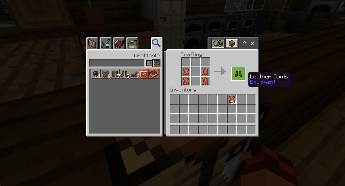 Boots are created by using two slots on either side of the Crafting table. This can look like the quotations around the letter ‘n’.