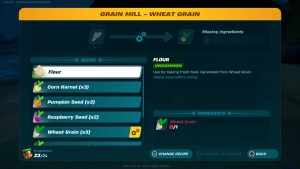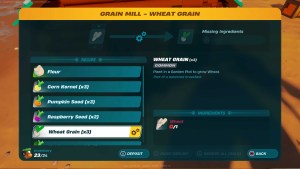 Deposit the Wheat into the Grain Mill and wait. You’ll receive 3 Wheat Grain for every piece of Wheat that you put in, so you can accumulate plenty rather quickly. After this, you’ll want to navigate to the top of this menu and select Flour.