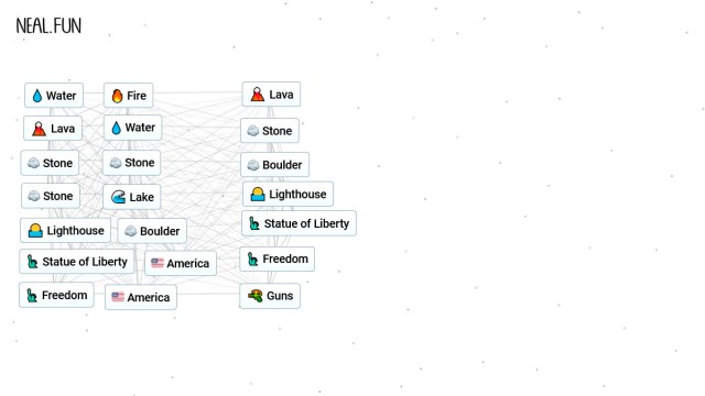 While this most likely refers to America as a continent and not the USA specifically, elements are always representing multiple stuff that share the same name in Infinite Craft. And with America in our hands, we only need a few more steps to get to our final objective.