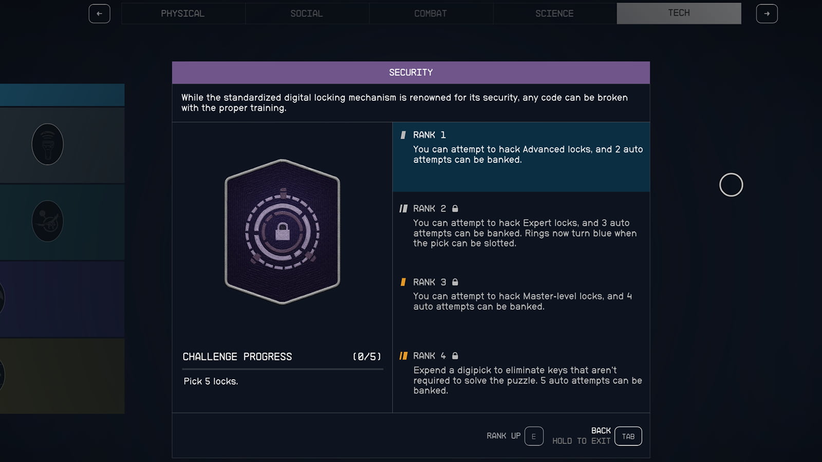However, you won’t be able to unlock this immediately. Every rank has specific challenges you must complete before you are eligible to rank up. For example, going from level one to two requires picking at least five locks, increasing as you reach subsequent ranks.