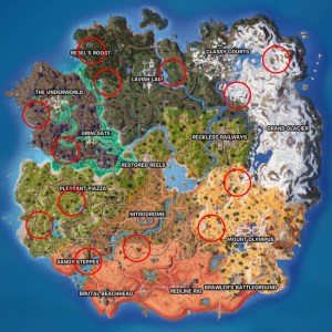 To complete the “Pilfer Weapons from Weapon Cases” challenge from Pirate Code Five in the Fortnite Cursed Sails event, all you need to do is find ten weapons from weapon cases. These weapon cases are mostly found inside Weapon Bunkers, of which there are 13 in total, scattered all over the map. Here are the locations where you will find Weapon Bunkers in Fortnite: