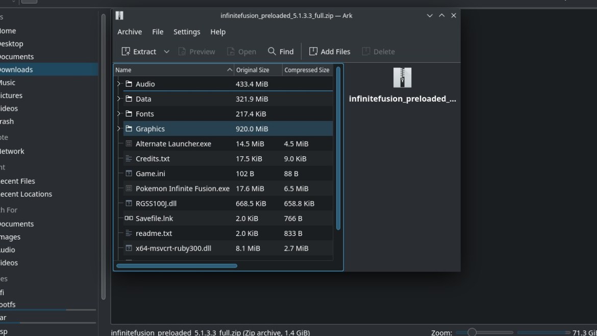 - Open the newly extracted folder in Downloads and find Pokemon Infinite Fusion.exe