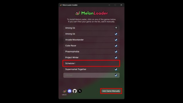- When you launch the MelonLoader installer, you will get the option to choose from a list of games. If you see Schedule 1 in the list, select it to continue and skip the next two steps.