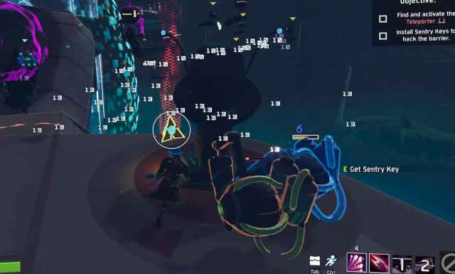 You need three keys to hack the barrier first, which you bring down by installing the keys in these Sentry Terminals. There are three of them, and you can easily move to them by using the new zip line things.