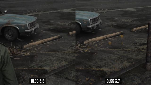 As you can see in the comparison above, the leaves leave a noticeable white trail during their movement, but in the case of 3.7, it’s barely there, and the leaves have a more defined look. This applies to other objects that are in a constant state of movement, and it’s mostly fixed with the latest DLSS version.