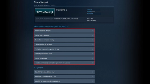 - Below, you will select if you want your refund in your Steam Wallet or back to the account you used to purchase the product.