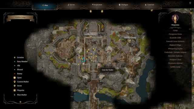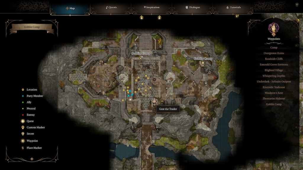 After going through the Heavy Oak Doors right next to a huge and vicious ogre called Guardian Gurgon (you really can’t miss him), you’ll reach the Shattered Sanctum. Upon entering a large chamber, you’ll need to climb right up the stairs and go through the Ornate Door. Here’s the map of the Goblin Camp: