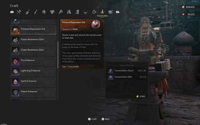Finally, you can also craft the Primeval Regression Orb after you unlock the blacksmith at the Crevice. It’s available to craft in the Consumables section and each Primeval Regression Orb requires the following materials: