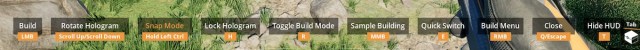 The shortcuts are visible during the build mode UI, and individual functions are highlighted when pressed.