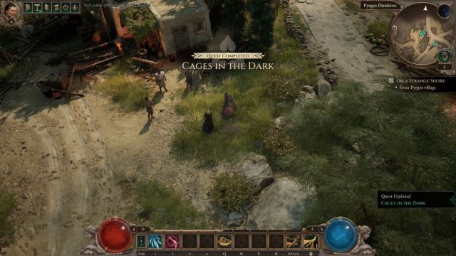 That concludes the brazier puzzle and the Cages in the Dark quest. From here, you can continue your path to the Prygos village.