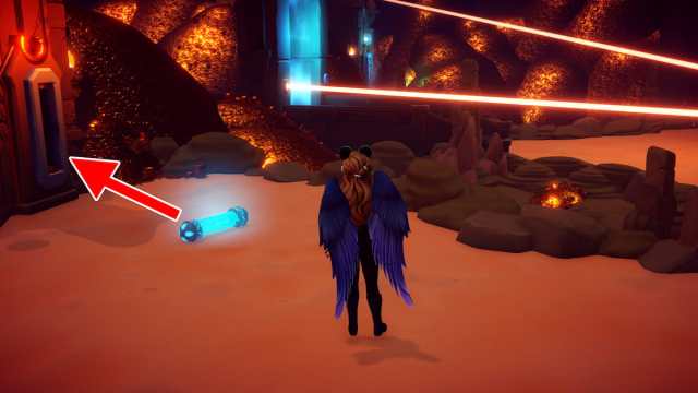 At the first cave, you’ll find a path blocked by purple shards and a lever with a pillar to your right. Head left and clear away the shards to travel along a path to a power coil. Pick this up and place it in the nearby pillar to activate a second light beam connected to the lever.