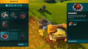 Building a campfire is one of the first things you’ll do when you start LEGO Fortnite, as it only requires three wood to make. To create one, gather some wood from nearby trees, head into your build menu, and select the campfire before placing it anywhere on the ground. The campfire provides warmth in a short radius, and you can place multiple around the map for extra cold resistance.