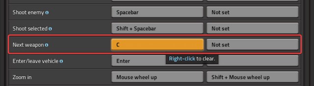 As of version 2.0, weapons are now switched in Factio by pressing the “C” instead of “Tab”.
