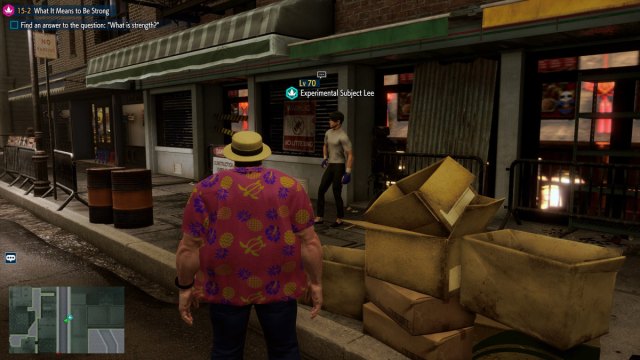 To start The Busybody Decoy, go to Metro City at night and follow the quest marker (the teal icon with a crown) to the alleyway west of the park. There, talk to Experimental Subject Lee. He’ll kick off the quest by asking you to fight people around town.