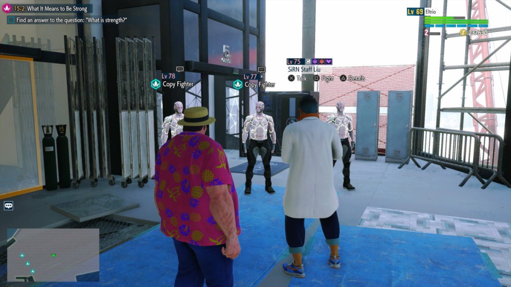 On the fifth floor, talk to SiRN Staff Liu and challenge his three Copy Fighters. They are Levels 77 and 78, and you must defeat them using specific moves.