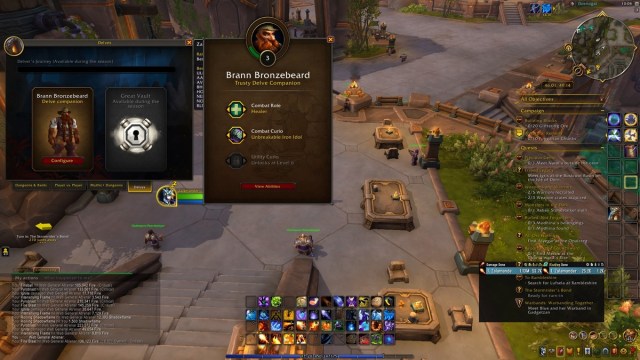 You can switch the roles of your companions by pressing I and opening the LFG menu. In this menu, you’ll see the dungeon finder, mythic+, and other tabs. Look for the Delve tab, and it’ll show your companion, such as Brann. Tap the configure button, and it’ll open up the companion’s role, equipped curios, and abilities. You can change the companion’s role and curios in this window.