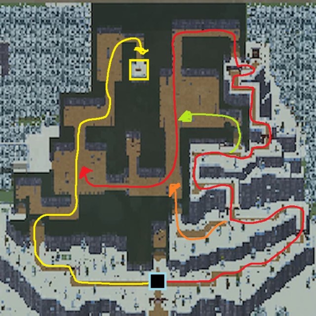 2. After you pass the first gate and turn left, you will have two choices: to go further left, or to go up, through the gate. If you go further left and then enter the cave, you should just go left until you reach the big room mentioned in Route 1. If you want to go up through the gate, these are the next steps: