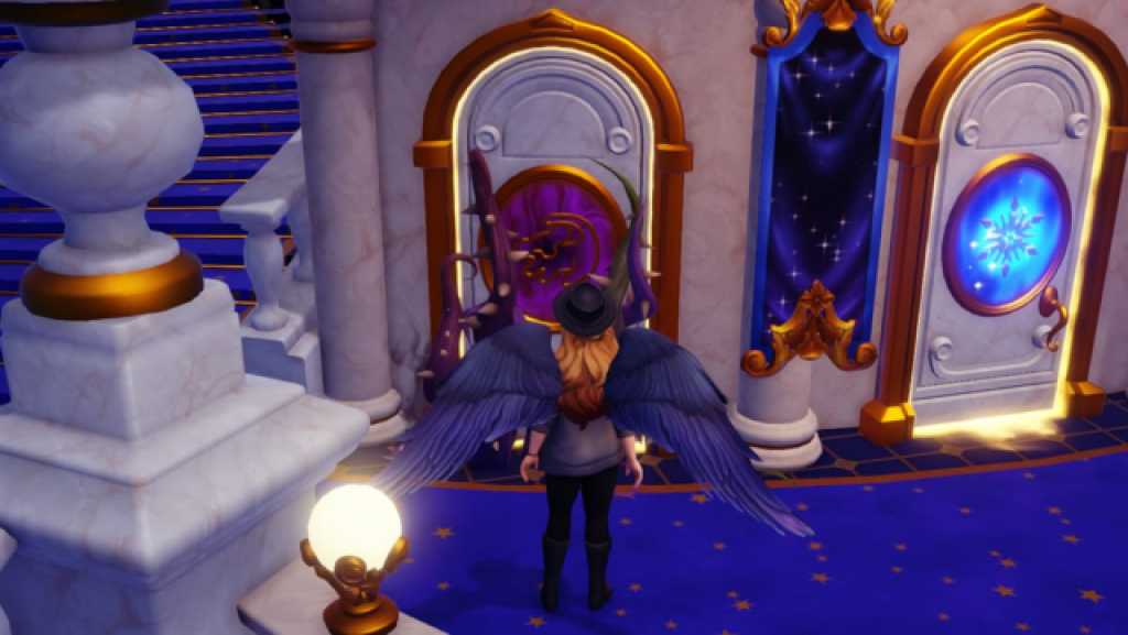 When you enter Dream Castle, head to the second floor and look for the leftmost door in the center area. You’ll see ones with alien, snowflake and lion symbols, each symbolizing their respective realms. The Lion King realm door has the lion symbol, and you’ll have to unlock it using Dreamlight.