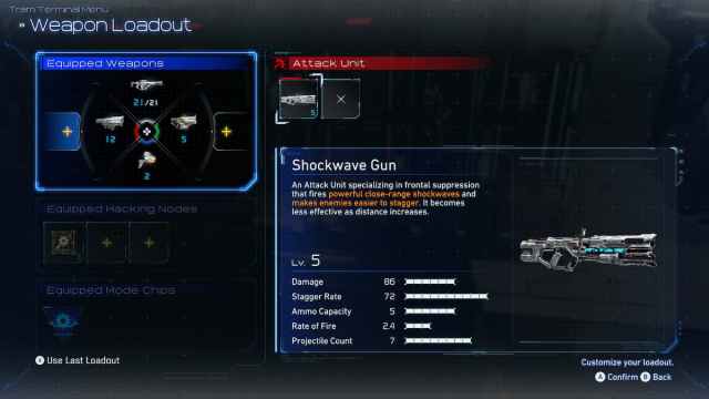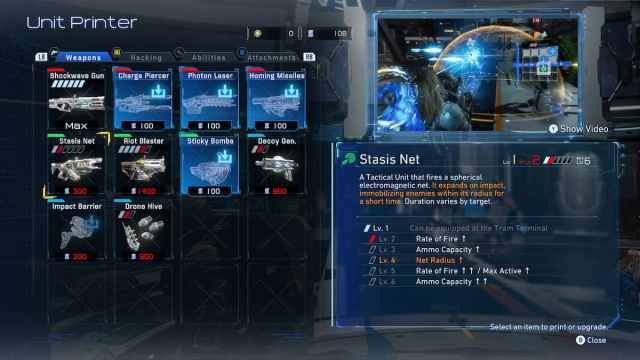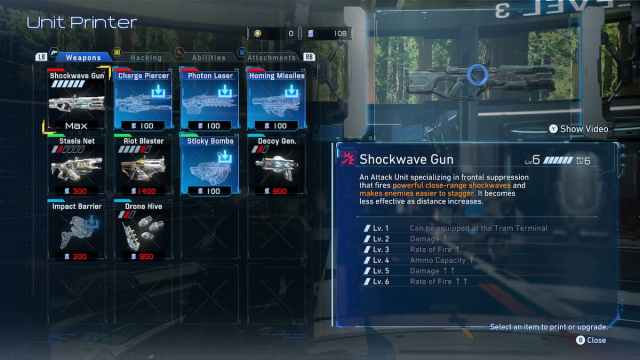 Even though this is an essential part of the combat experience, it’s actually kind of easy to miss. You might assume early on that the Unit Printer only prints the weapon for you to use, but it’s actually doing a lot more than that and is responsible for upgrading not just weapons, but unlock new, very useful attachments and abilities.