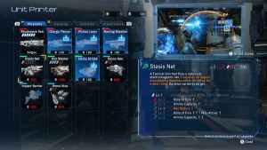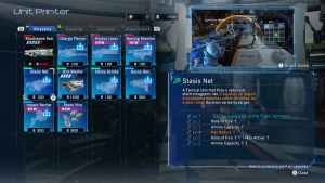 • Once you see a weapon listed under the Weapons tab at the Unit Printer, you need to print it once for 100 Lunafilament.