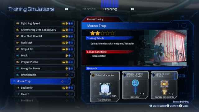 If you want more Lunafilament, keep an eye out for Safe Boxes in each area (you can also revisit each area!), as they usually contain a large amount of it. Additionally, you can earn Lunafilament by completing the challenges in different training simulation missions offered by Cabin at the Shelter.