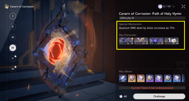 An example I’m currently working with is the Cavern of Corrosion: Path of the Holy Hymn where the Defense and Lighting Damage Increase Relics can be dropped. Physical and Quantum are the best elements to bring with you into this domain, although my only Quantum character is Qingque. Borrowing Seele for this specific domain can help shave off a lot of time and angst for my characters so they don’t fall in battle or take several turns to defeat the enemies in this domain.