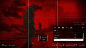 While photo mode is active, you can move the camera around, zoom in, and adjust several settings. These include the following: