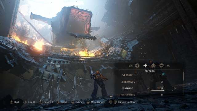 Apart from the usual image options like brightness, contrast, exposure, saturation, and bloom, you can also change the facial expressions of characters, remove their helmets, or hide them from the scene entirely.