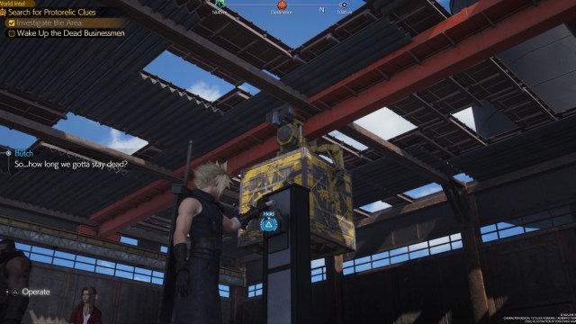 Head to the right of the main entrance and flip the switch by holding “Triangle” to wake up the dead businessmen. When you flip the switch, the box in the center of the room will start to fall and will force Beck and his gang to get up and run. Each time you find them, they try a new trick on you, and this one is just as bad as the others. Even if you know it’s all a bad trick from Beck, you still need to play along in Final Fantasy 7 Rebirth.