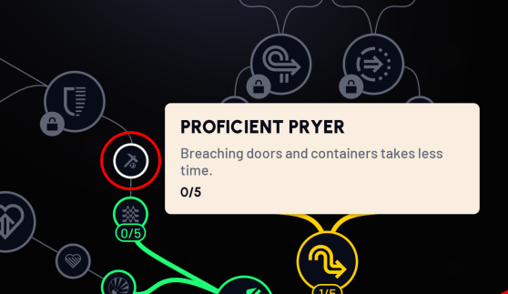 Compared to regular searching, breaching is pretty loud and can easily alert players around you if you aren’t careful. To reduce the overall noise it makes, you can put some points into Gentle Pressure as well. A combination of these skills will allow you to breach faster and quieter.