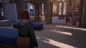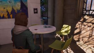 After her interaction with Moses at the observatory, Max will end up at the Fine Arts Building. Remain in the “Living” timeline, and make your way towards the cafe.