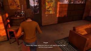 Max will eventually end up at the Snapping Turtle bar in the “Living” timeline. Before talking to anyone, make your way towards where Reggie and Diamond are seated and pass them by.