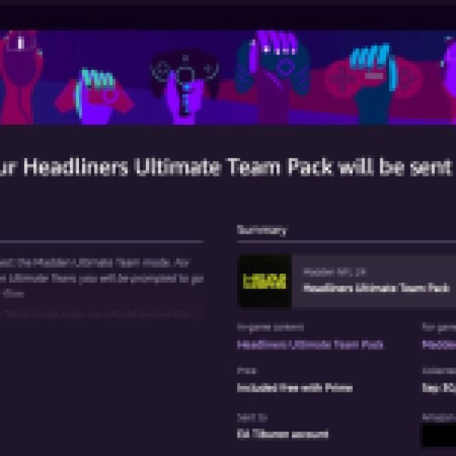 Once you’ve returned to the Amazon Gaming website, you’ll get a message confirming that the link was successful and that you have received your Ultimate Team rewards, which will be sent to your Madden NFL 24. You’ll find the rewards in your MUT 24 unopened packs. The reward you’ll receive is a Headliners Fantasy Pack. You’ll get to choose between an offensive & defensive player.