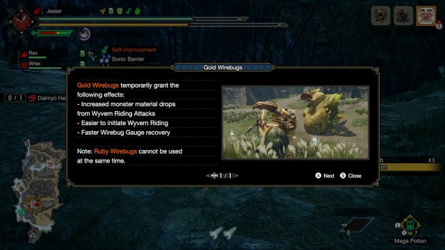 If you happen to find a Gold Wirebug when looking around a zone, it’s a great thing to pick up before hunting the monster you’re assigned. It can make the fight a little bit easier by giving you more chances to ride the monster and slam it around. It also will net you more materials which is great for those of you grinding out a new weapon or armor set.