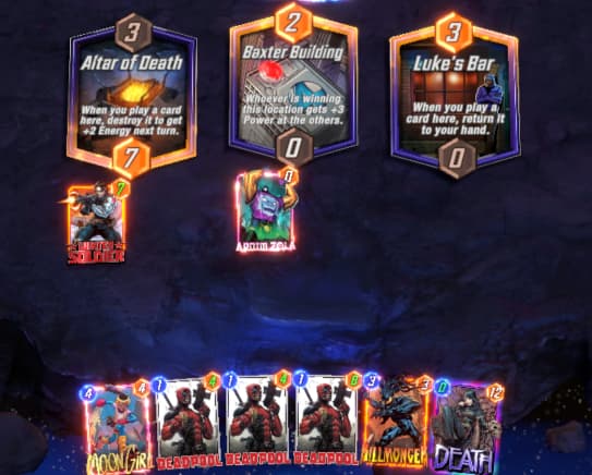 Deadpool is almost an instant win for this location. It ramps up your Energy insanely and delivers a big card for your last turn. If you can multiply Deadpool with Moon Girl, or Arnim Zola + Killmonger, that’s even better. Bucky Barnes is good at securing the location at the start (be mindful of cards that can place the cards on this Location safely, such as Dr. Doom, Jubilee, and White Tiger).