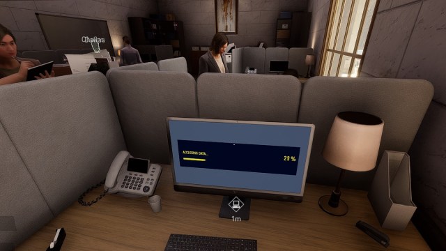 Once you have the QR codes, get into the Human Resources department and access the highlighted PC, ideally without the civilians in there seeing you. Once it finishes its hack, it’ll read which of the three places you need to go. You’ll need to either head to the Loan Officer, the Branch Manager, or the Bank Assistant. For example, I needed to head to the Loan Officer near the Main Lobby on my latest playthrough. My god was that camera ever painful to deal with.
