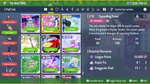 The following table details all 28 new TMs in The Indigo Disk, the materials and LP needed to make them, as well as where the TM can be found initially.