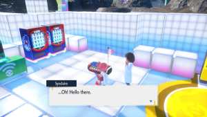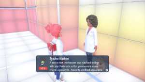 Beside this healing machine, you’ll see Synclaire, who will ask if you want to participate in her experiment. Agree, and you’ll send out one of your Pokemon outside. Synclaire will allow you to sync up with the first Pokemon in your team.