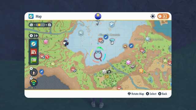 As to where exactly in the Paldea region this Pokémon will spawn is not a hard guess. Its Ice type gives us a great hint: it is found at Glaseado Mountain, just a bit south of Glaseado Gym. You can fly to the Gym and glide down from there. Glastrier should be chilling right there in the snow, right between a Pine tree and some ruins. Here’s the location: