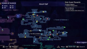 For all item locations in Tower of Silence, click the map below to expand and refer to the following tables for instructions on obtaining them.