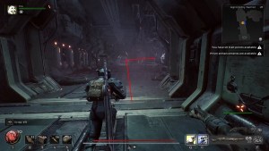 Next, take a left to find a crop field with a glider drone at the far end. You’ll notice a red light coming from a hole in the distance. To reach it, you’ll need to cross a gap with purple liquid below. Hop on the glider drone and descend. Be prepared to face a few enemies beyond the electrical webs, including a specter.