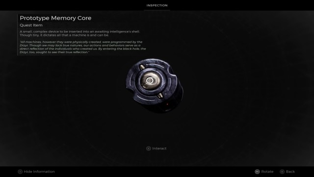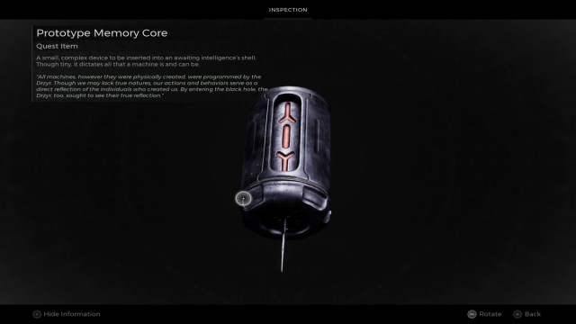 Next, take the glider drone to the right. Descend and pass through the opening on your right. After landing on the platform, follow the path until you reach the end, where you’ll find the Prototype Memory Core.