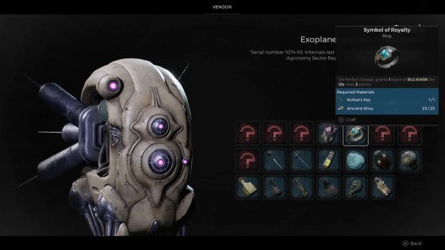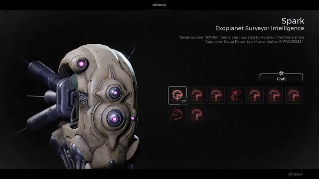 After acquiring all the new materials, thanks to the Alloy Extractor, you need to bring them back to Spark. The times Spark has in store, previously showcased in the robot’s inventory with the ‘???’ sign, will now have proper names. Craft each item by gathering as many Alien Alloys as we mentioned above.
