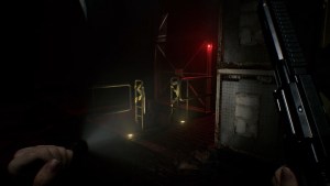 Once you are near, you’ll hear the Girl drop down and chase after you immediately. Turn right to the light switch. Activating this will turn on the light and stun the Girl for a few seconds. However, you want to wait for the Girl to come a little closer so you can squeeze through and activate the Power Distribution Unit here. Once the power is on, she’ll disappear again.