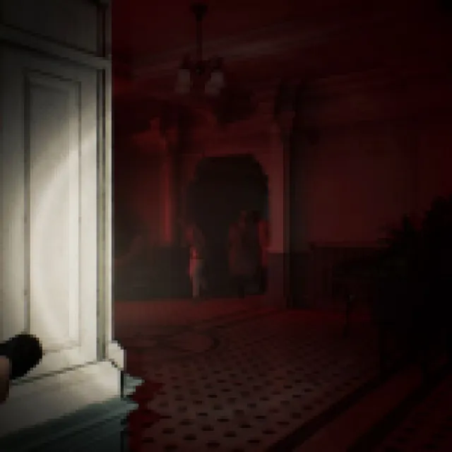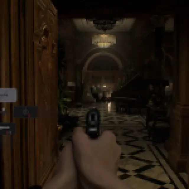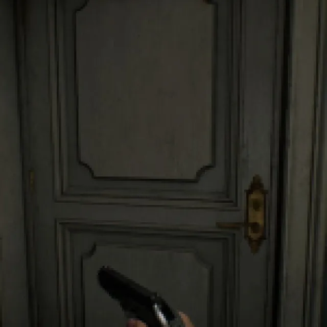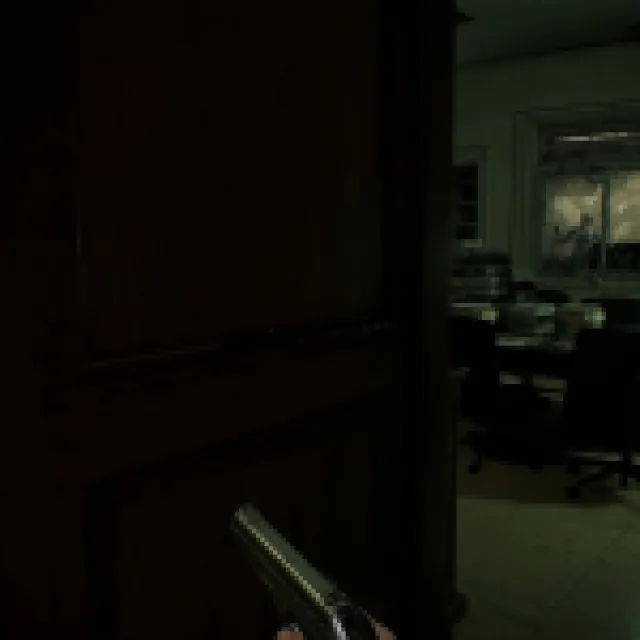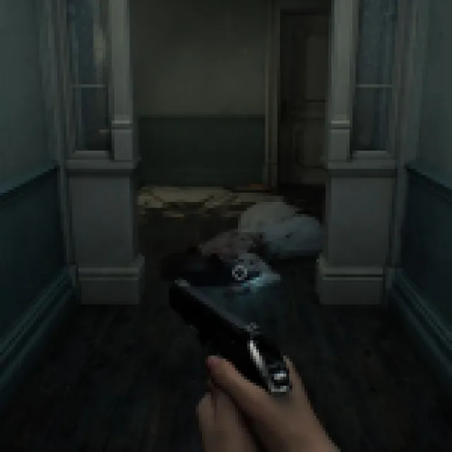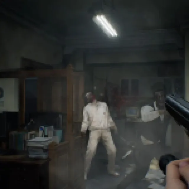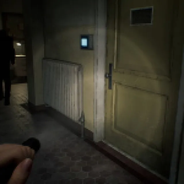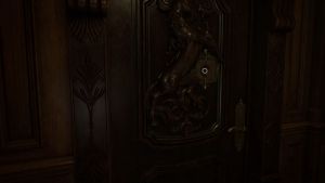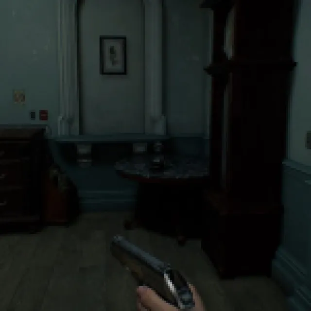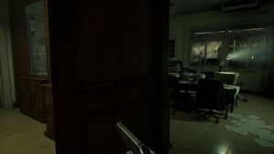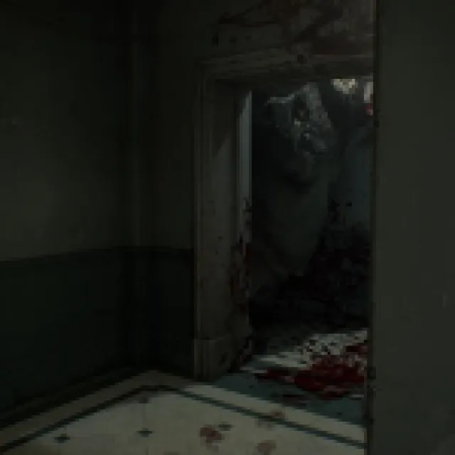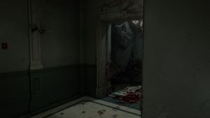 The big blob monster that saw you when you acquired the Wristband should start roaming the hallways here. It patrols the same way as the zombie with the cleaver, and this one can’t enter rooms with small doors like the Waiting Room.