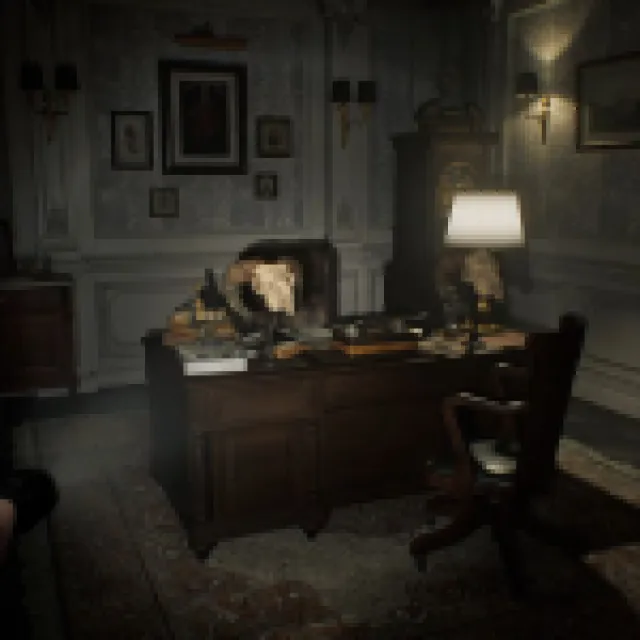 Enter the room (Lead Researcher’s Office), and there’s a typewriter for saving here. Grab the Lockpick by the desk on the left. Go to the main office and interact with all the photos and notes, which should give you clues about the other puzzles. The Sun Puzzle Box is in this office, but it has a padlock, so you can’t do anything about it yet, even if you know the combination from the clues.