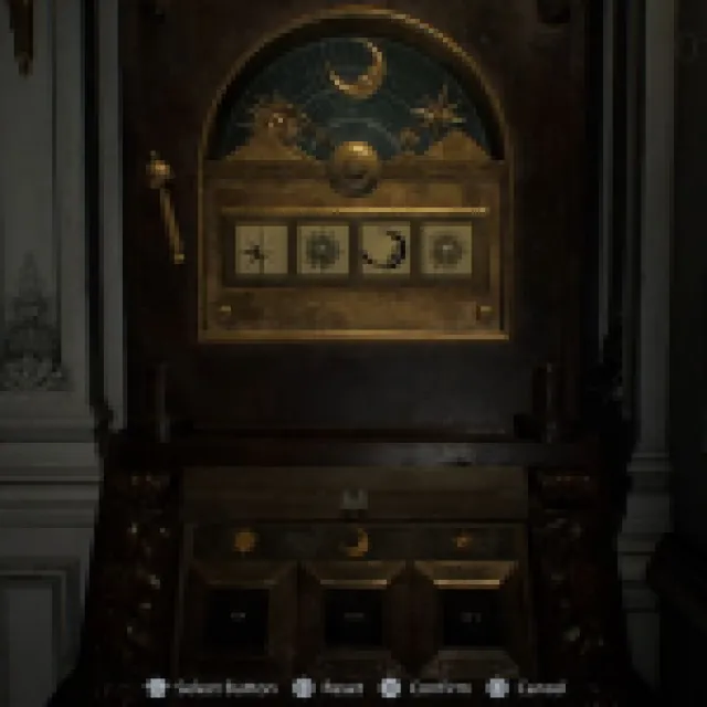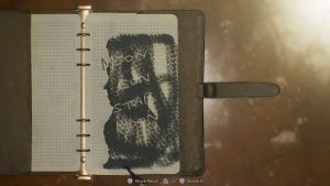 Go back to the other room and grab the torn journal on the coffee table at the center. Use the Pencil and shade the whole page. It should give you the combination to the Moon Puzzle Box in the same room, which reads “Moon, Sun, Star, and Moon.” You’ll get the Moon Quartz, which is needed to open the main door by the lobby of the Care Center.