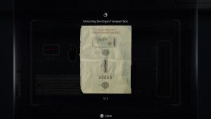 Run back to the Guard Room and open the Organ Transport Box using the notes.