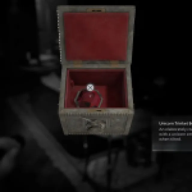 Work your way back to the Lead Researcher’s Office for a cutscene. After the cutscene, go back to the office and use the Corrosive to destroy the padlock. The clue to the Sun Puzzle Box combination should be in the photos, or just use Star, Sun, Moon, and Sun. This gives you the Sun Quartz and a Leatherbound Notebook with a note on how to unlock the Organ Transport Box.