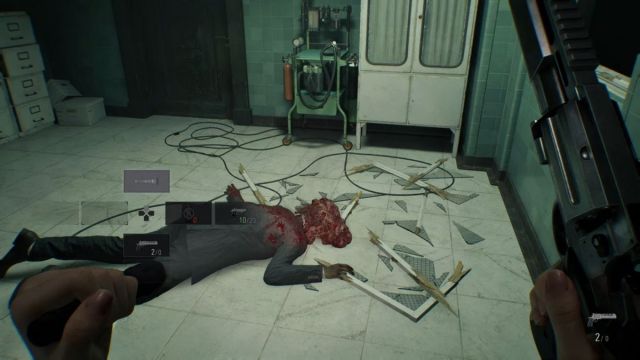 After they disperse, eliminate the remaining zombie in the hallway. Work your way to the Waiting Room and sneak to the right side. Use the Hemolytic Injector to eliminate the zombie at the back, and don’t forget to pick up his Transfusion Bag. The other zombie should be preoccupied with drinking the blood on the floor for now.